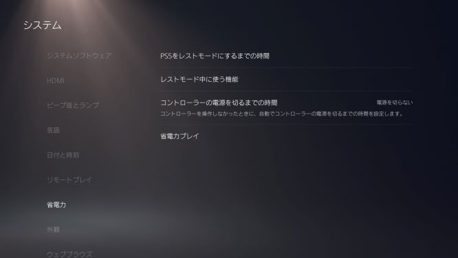PS5の設定でコントローラーの自動電源オフ間隔を調整できます。