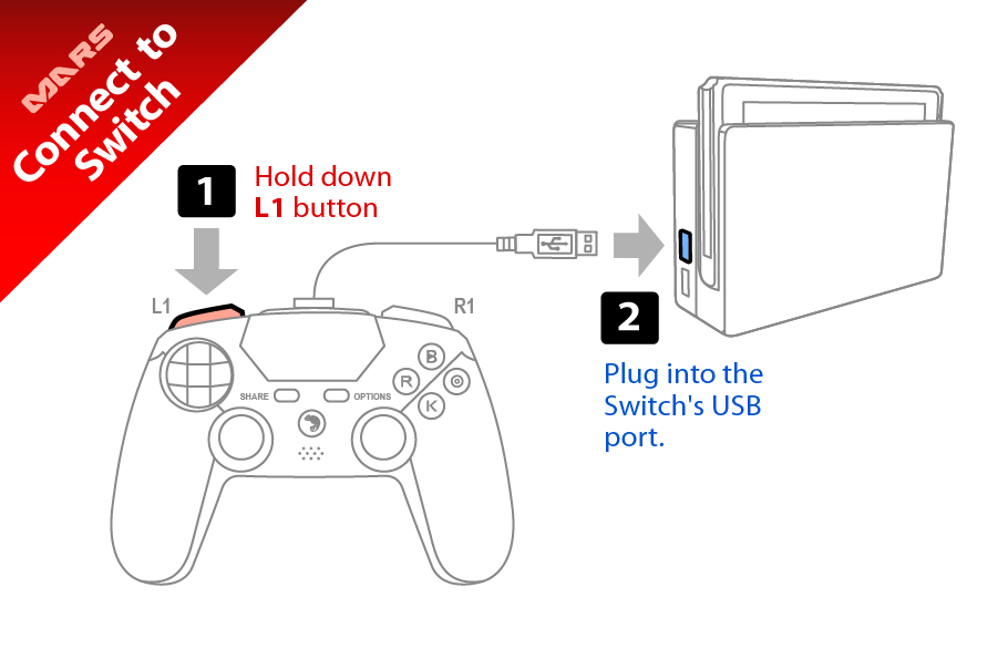 - 按下Mars手把上的L1鍵,同時插上Switch主機的USB中。